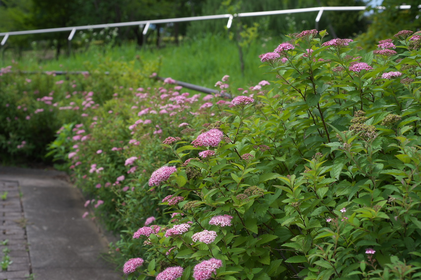 | みなみ野かしのき公園 | 南側歩道のシモツケ(下野)2 - 2012年6月 |